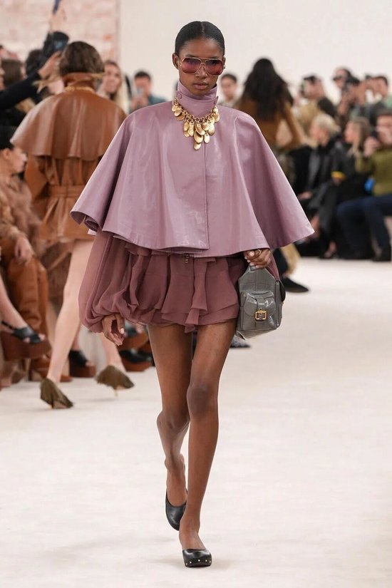 2025年春夏秀场中斗篷/披风式外套被多品牌大量使用 ——包括Burberry、Khaite、Tibi 等。斗篷外套正在从昔日偶发的高定表现,变为“可观察的时尚潮流”。