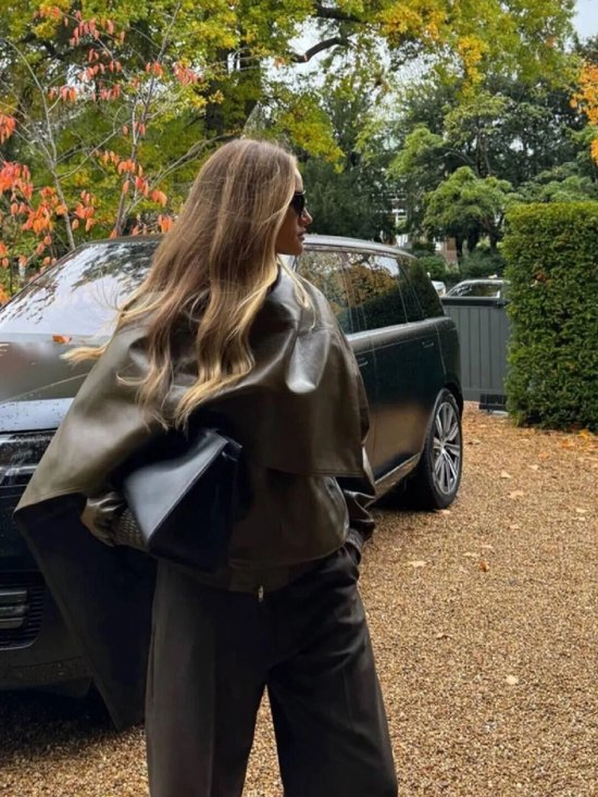 材质的选择同样关键。羊毛呢斗篷稳重、保暖,气场满格;皮革斗篷则充满未来感与力量感;若换成双面呢或开衩设计,又能多几分流动与轻盈。在当下强调“多场景穿搭”的语境中,一件廓形利落、细节考究的斗篷大衣,足以从白天的会议室延续到夜晚的晚餐局。