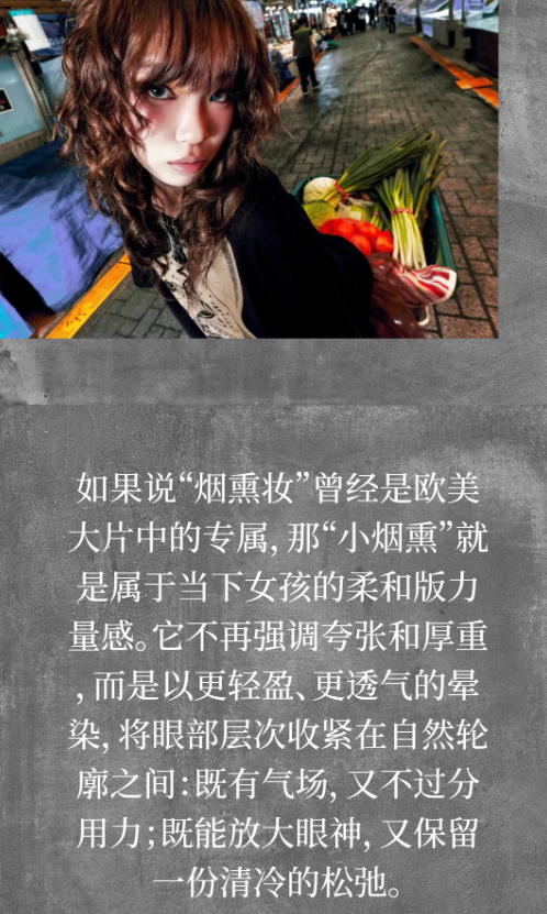 相比传统欧美烟熏的重手与厚感,轻烟熏更强调层次的“空气感”与边界的“模糊处理”,整体呈现出一种冷静、松弛、疏离的视觉风格。通过浅色大范围铺开、深色集中在线条根部的方式,让眼睛在不夸张的范围内自然横向拉长,呈现一种清冷、松弛却又精致的视觉效果。