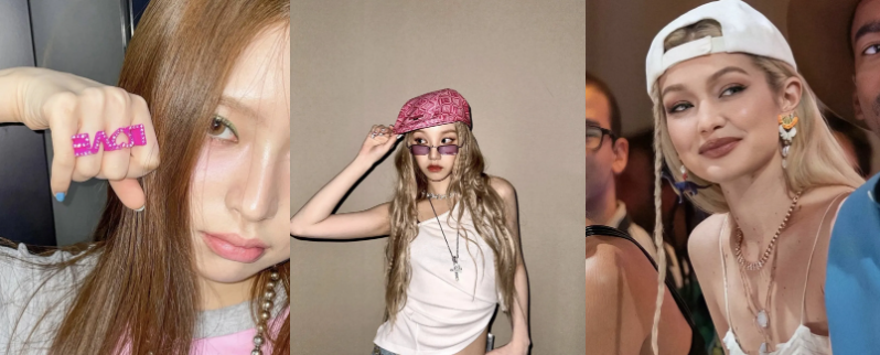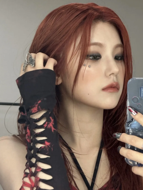 彩色珠串则能为烟熏妆增加灵气与反差感,让妆容从成熟偏冷的氛围中抽离出一点 playful,特别适合同样带随机感的编发与双马尾造型,藏在发丝间的小珠串或五彩耳钉,都会显得“狠得很可爱”。
