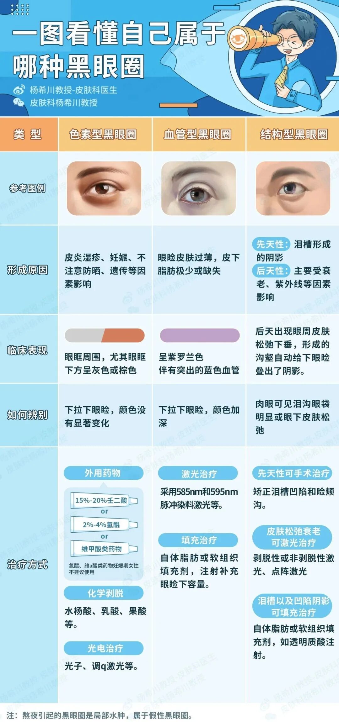 其次,黑眼圈可分为色素型、血管型、结构型和混合型,病因也和遗传、皮炎、过敏、泪沟过深、缺少防晒等有关,痔疮膏连对症治疗都不能做到,也没有相关科学依据,怎么能保证对治疗黑眼圈有效呢?