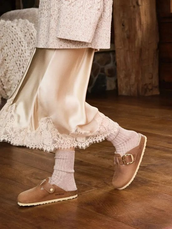 The North Face的面包鞋已经火了多年,今年与SKIMS联名后更是再度爆红。一脚蹬的方便、羽绒填充的保暖、橡胶大底的抓地性,加一双彩色袜子就能轻松穿成冬日IT Girl。