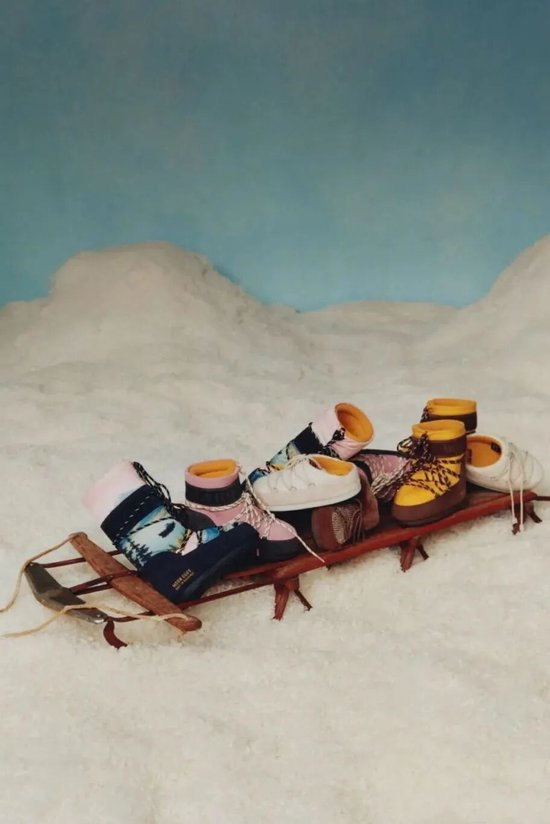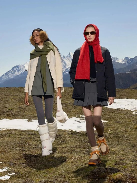 胖胖的外形、毛绒鞋面包裹着脚,既保暖还能“一秒显腿细”。它的灵感来自1969年宇航员登月时的太空靴——超未来感造型+功能性保暖,让它一度成为雪场与城市穿搭的双料选手。绑带设计增强稳定性、防水外层能应对深雪,踩着它走路,仿佛是在进行一场轻盈的太空漫步。