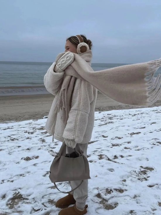 韩剧女主氛围的耳包。大毛毛款式的不仅能显脸小,在保暖的同时还能增加造型完整度。