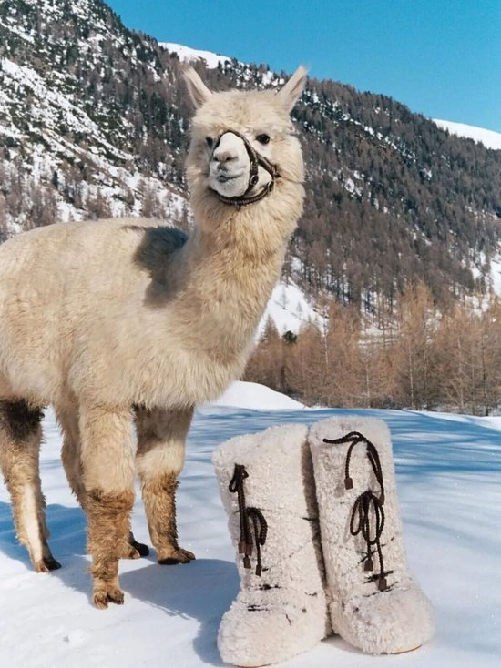 除了经典款之外,MOON BOOT的联名系列也是十分抓眼。比如今年和Jacquemus推出的毛毛靴,仙气十足。