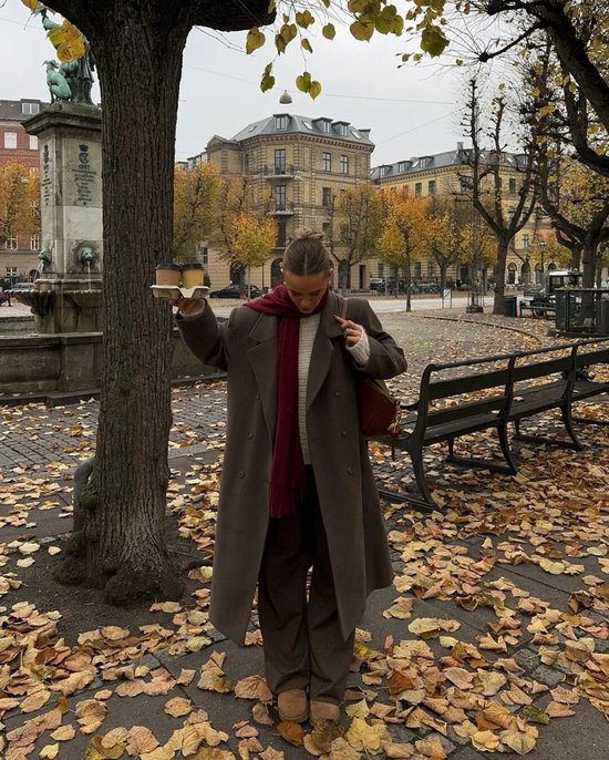 如果你刚开始尝试这个色系,可以从配饰入手,一双棕色短靴,一个皮质包包,或是一条棕色围巾,都是不经意间提升质感的最佳选择。