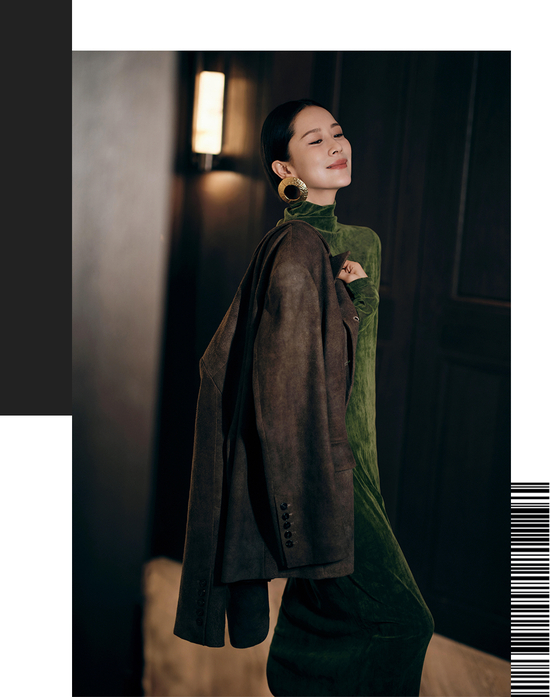作为外套搭配简单的牛仔裤,显白又提气色;绿色针织衫也是实用之选,单穿温柔,当作内搭提亮整体造型。