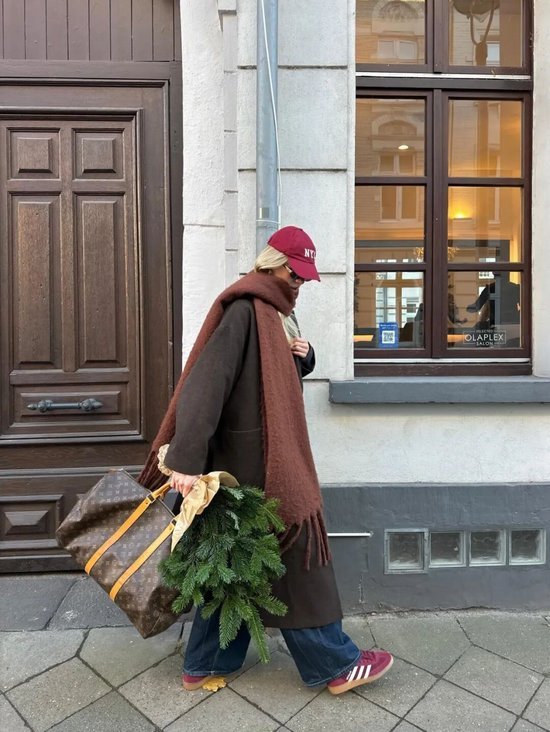 冬天穿搭的层次感,其实很倚重一条好围巾。今年可以试试有鲜明纹理感的大围巾,围的时候不用太刻意,松松地绕一圈,或者用巴拉克拉法帽式裹住肩颈,最简单的操作反而最能营造出不费力的时髦。