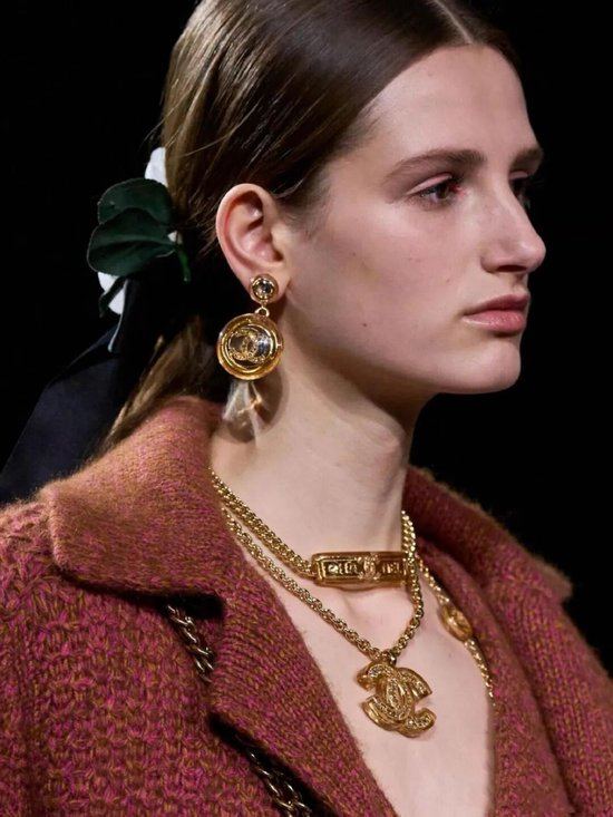 金色饰品是解锁绿色贵气与神秘的关键。金色点缀于深邃的丝绒绿之上,赋予造型一种低调而深邃的奢华气质。