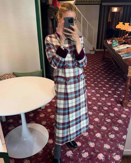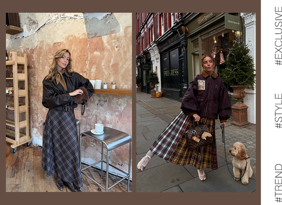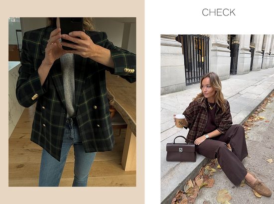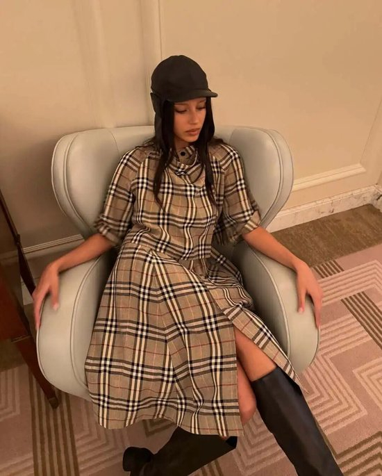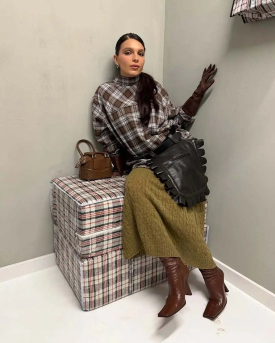其中法则之一,就是“留白”。用纯色单品与简洁剪裁作基底,让格纹图案不必抢占全部视觉焦点,从而打造出平衡和谐的造型。比如穿格纹长裙时,配一双纯色长靴,便能为整体造型留出呼吸的余地。