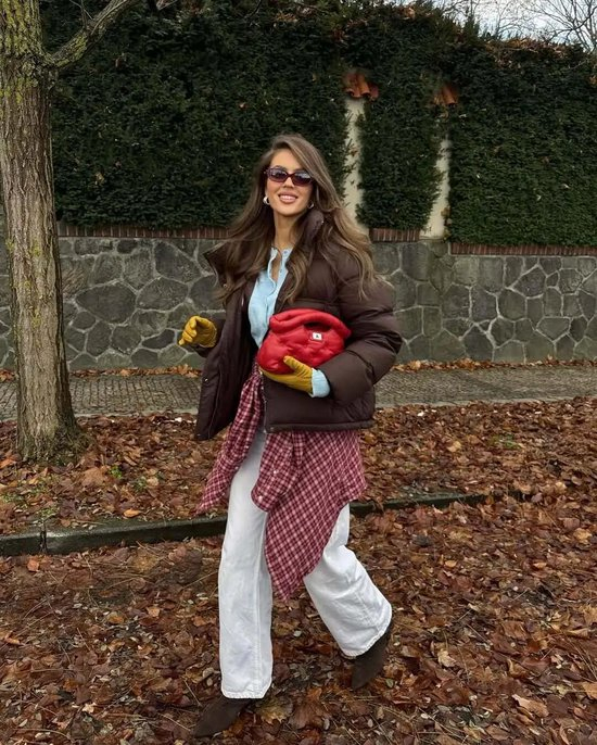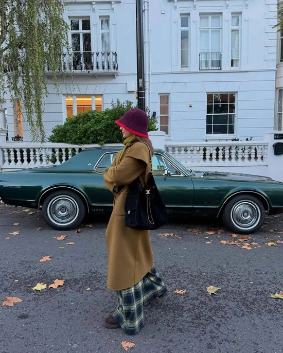 深色格纹自带冬日的沉稳气息,能轻松穿出低调高级的质感。一身不挑人的大地色系格纹加身,再点缀一抹亮色提亮——恭喜你!你已经掌握了时装博主常用的冬日(出片)穿衣法则。