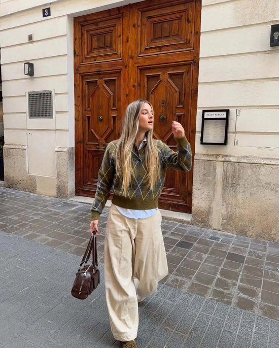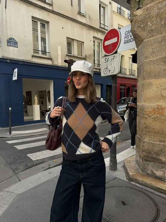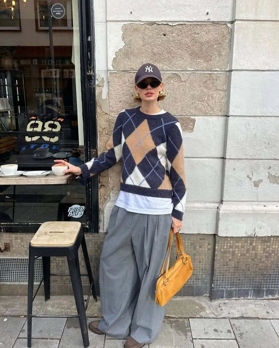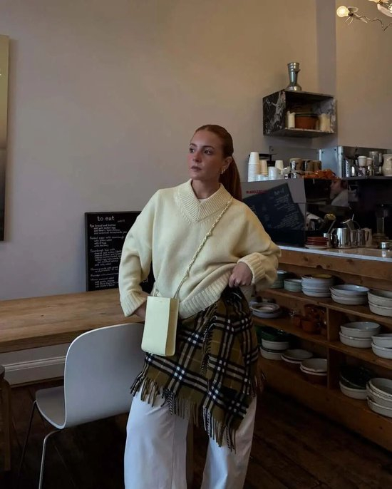 对于不同地区冬天都适用的,应该当属格纹毛衣,尤其是图案偏大的格纹毛衣,粗针织纹理像被岁月磨软的“旧衣服”。而且格纹毛衣总有一种天然的文艺气质,宽松地罩在身上,整个人都透着斯斯文文的书卷气。