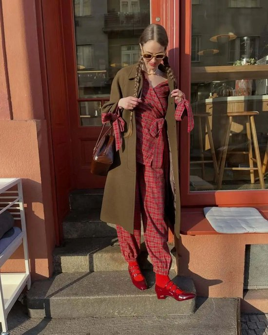 最近节日季临近,红色格纹一跃成为当之无愧的“氛围搭子”,它既保留了格纹的复古底蕴,又融入了节日的喜庆热闹,是很有仪式感的穿搭了!