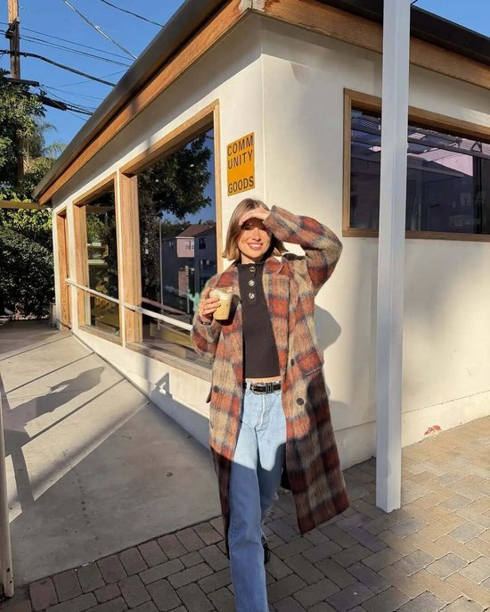格纹大衣无疑是冬日的“硬通货”,在冬天零上的天气足够保暖,色彩的交织和软糯的触感像冬日午后的阳光,简单配一条牛仔裤,便自带松弛随性的氛围。