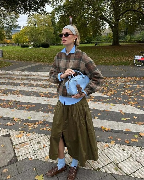 冬天如果想选一条松弛又有型的半裙,格纹半裙就是个不错的选择,不同廓形能够适配不同身形,随意搭配一件外套,复古优雅说来就来。
