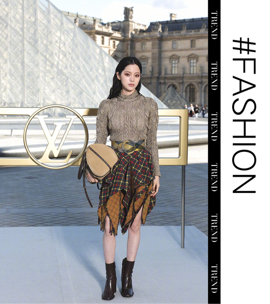除此之外,格纹与不同材质的“混搭”也值得一试。比如格纹毛衣配缎面半裙,格纹的硬朗线条与真丝的柔滑质感相互碰撞,产生了奇妙的化学反应。