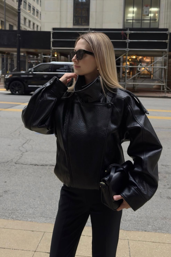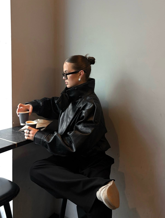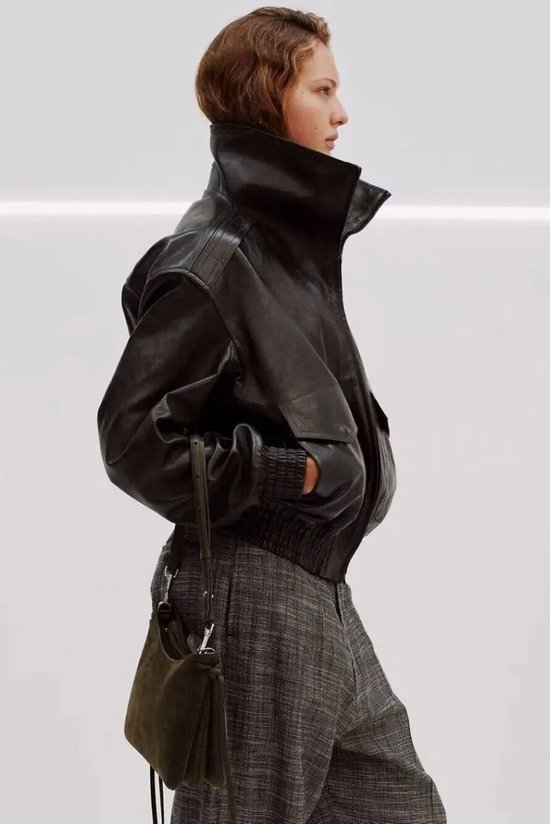 皮衣是立领款式里使用频率最高的单品之一,自带“锋利感”。不同品牌的材质与长度,能轻松切换街头、甜酷、轻熟风,秋冬穿它超吸睛。