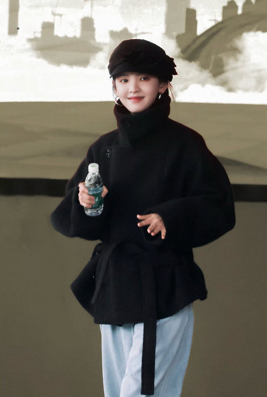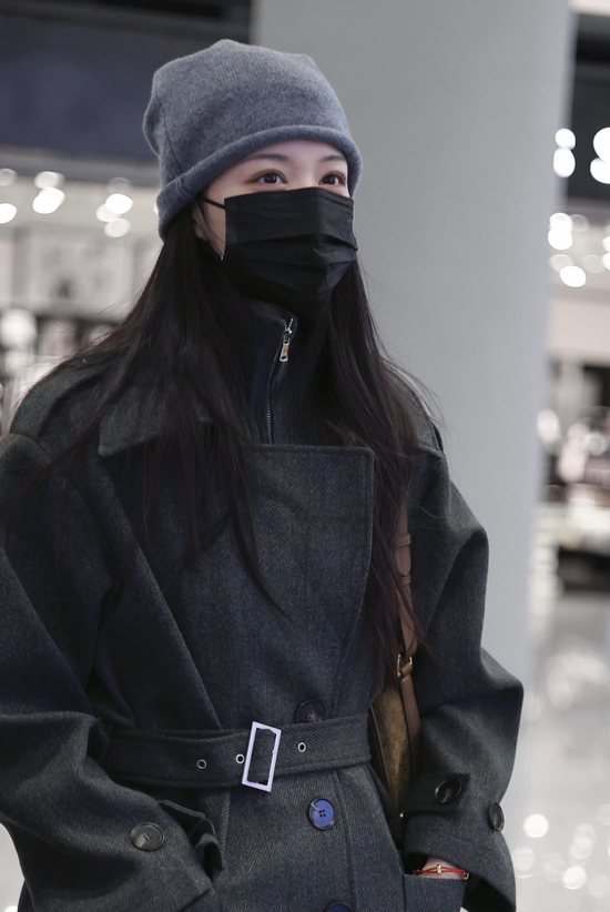 王楚然的机场穿搭也选择了带高领拉链设计的毛呢大衣,立领裹颈御寒,衬得气质清冷。松垮的廓形裹出慵懒感,腰带勾勒出腰线避免了臃肿。