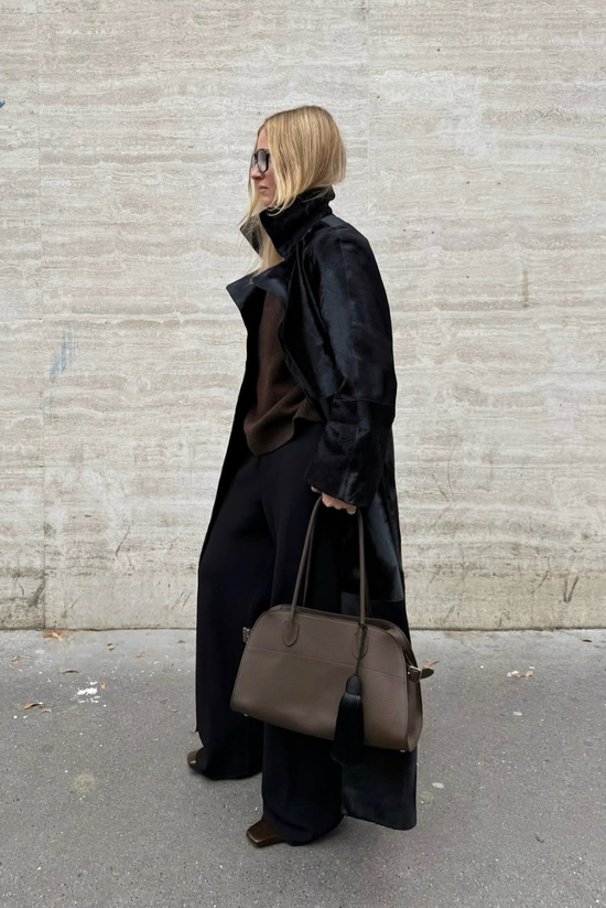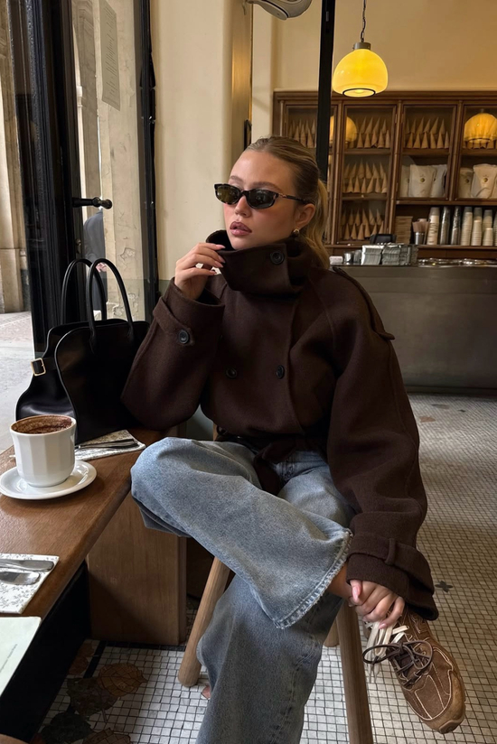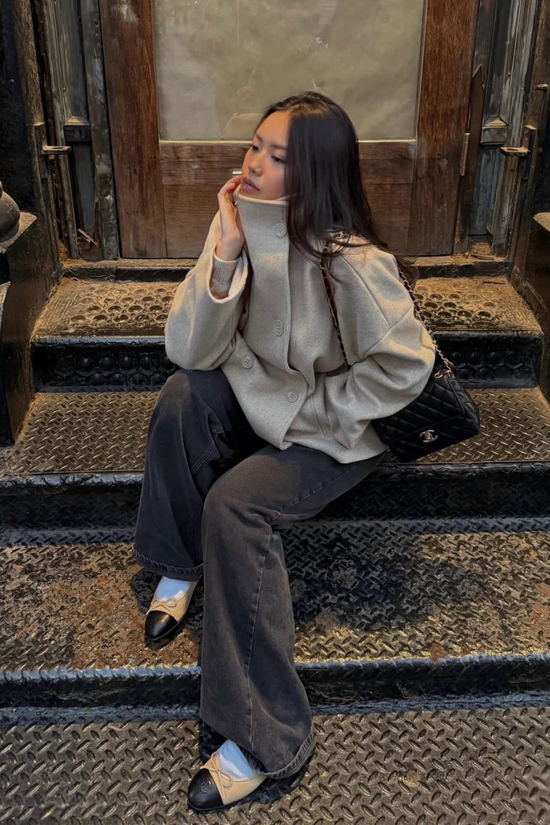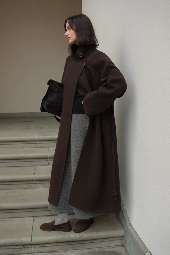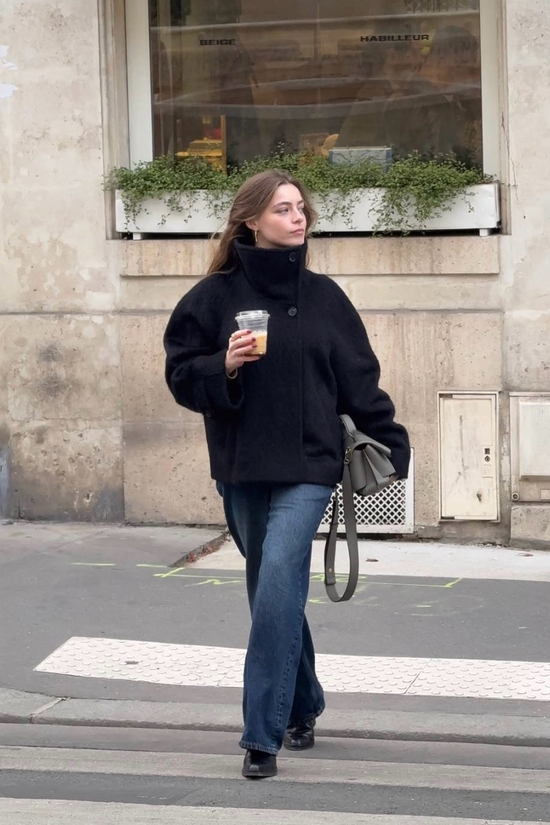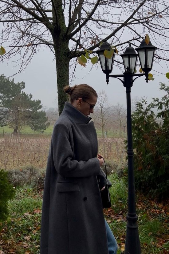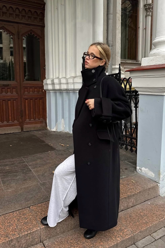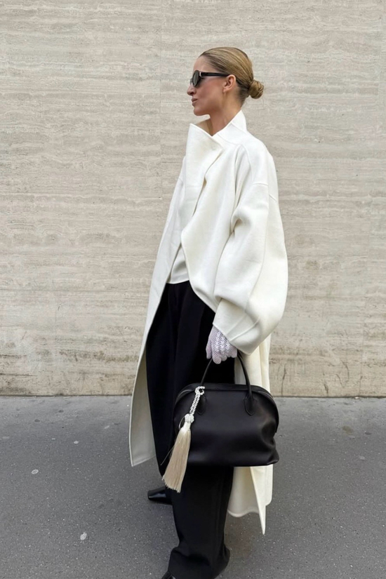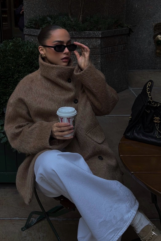 裤脚微微露出鞋尖,大衣的设计自带松弛感,去咖啡馆看书、逛艺术展都不突兀,素颜出门也有氛围感。