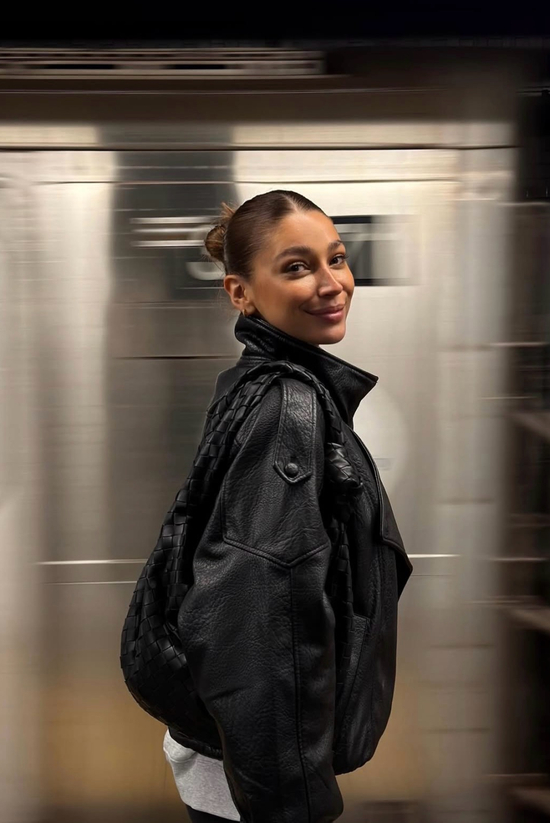 久未露面的Bella Hadid靠一件与广告产品同色的短外套赚足话题度,随性又酷飒,完美平衡了“松弛感”与“锋利感”。