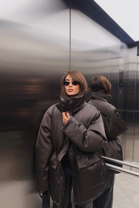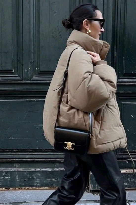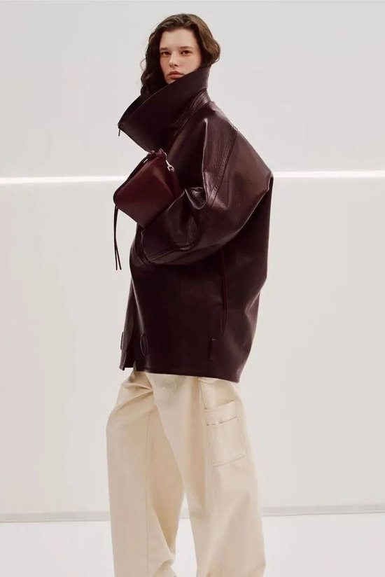 简单来说,它既有高领的保暖性,又有翻领的造型感,还自带松弛气质。无论是皮革的飒爽、风衣的经典,还是运动面料的休闲,只要配上这个领型,风格立刻鲜明起来。