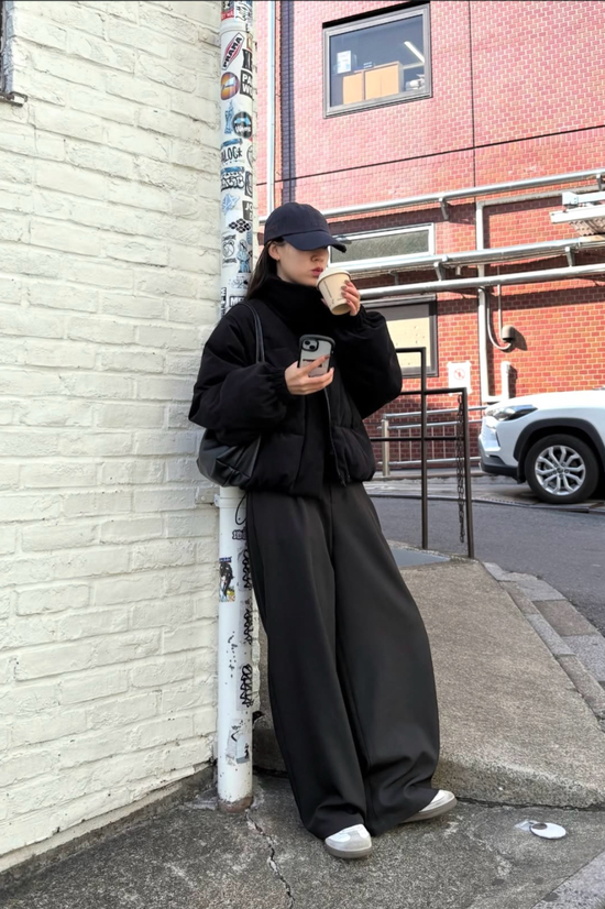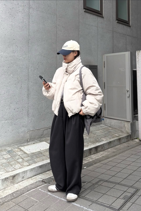 日常出街可选择短款漏斗领羽绒服,休闲裤+运动鞋,周末去公园散步、打卡咖啡馆,轻便不臃肿,随便拍都有日系松弛感。