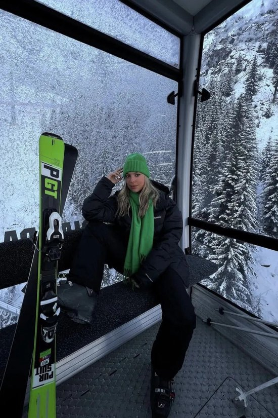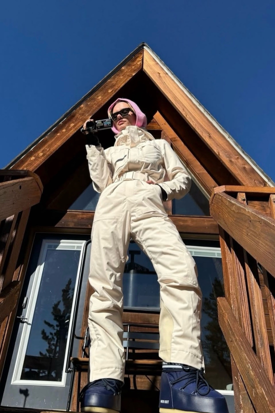 滑雪也能选自带漏斗领防风护颈的滑雪服冲锋衣,最好腋下自带拉链,透气不闷汗,雪卡、雪镜口袋设计实用,内搭彩色抓绒衣+休闲裤拍照更出彩。