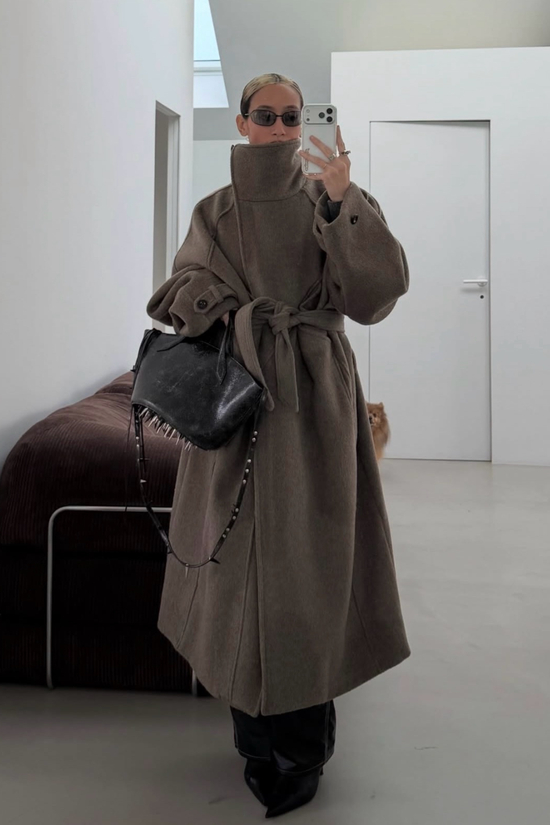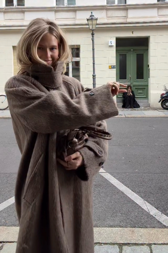高领大衣是漏斗领家族的“气质担当”,兼顾正式感与松弛感,自带优雅滤镜。不同品牌的面料与剪裁,能精准适配从职场到休闲的所有场景,轻松穿出“不费力”的高级感。