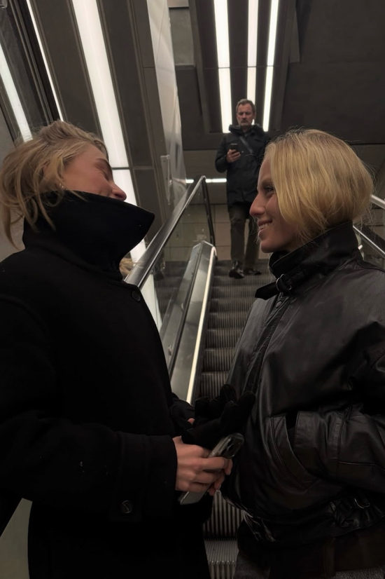 章若楠的Lemaire黑大衣则把韩系松弛感拉满,浅蓝阔腿裤搭配厚底鞋,仿佛自带“温柔滤镜”,连褶皱帽都在悄悄加分,甜美得毫不费力。