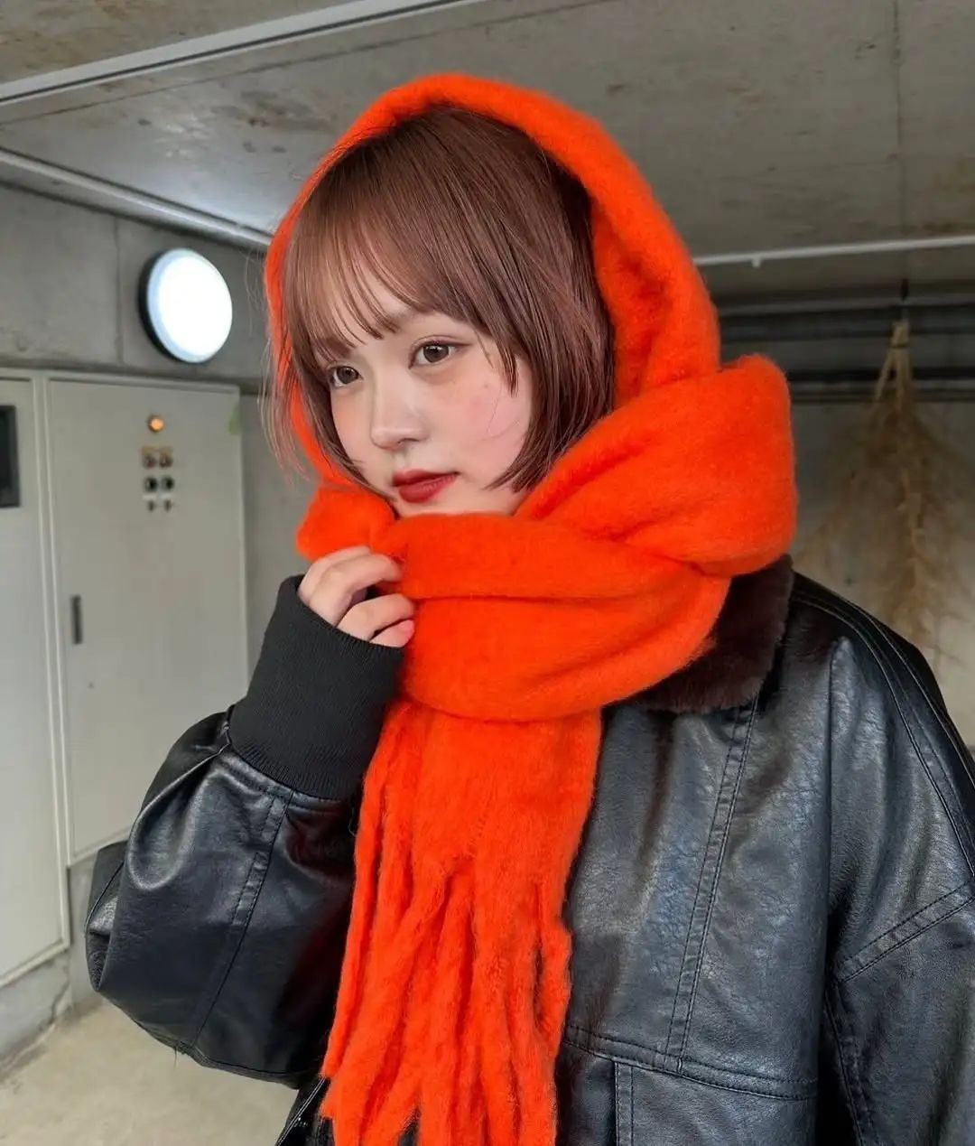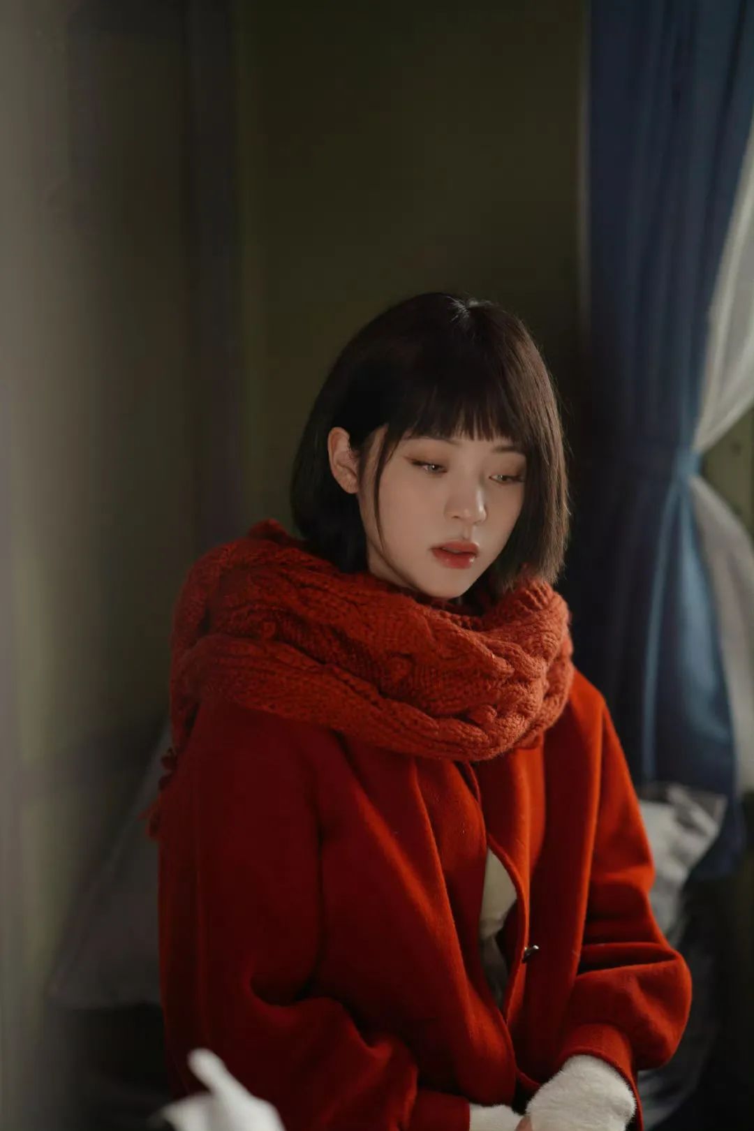 如果今年你准备在穿搭上大红特红一把,那么就把妆容的红色降一降,像张婧仪这身红毛衣+红围巾的叠穿就不太适合再在妆容多发力,仅用深红色唇彩做呼应就完成了点题。