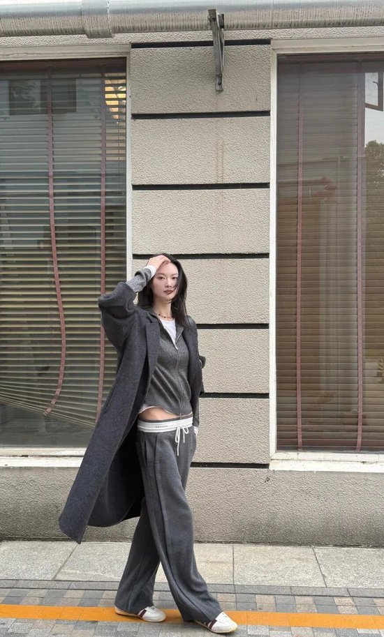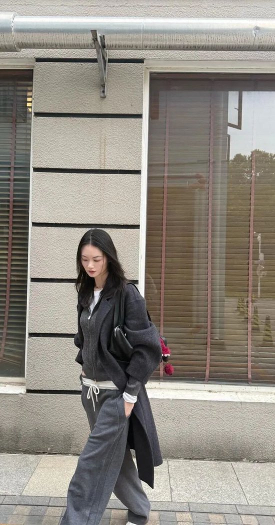 灰色运动裤其实也是百搭的时髦单品,