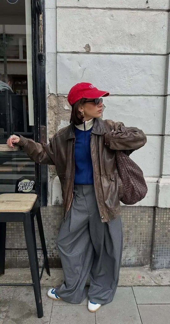 上身宽松随意,下身利落有型,
