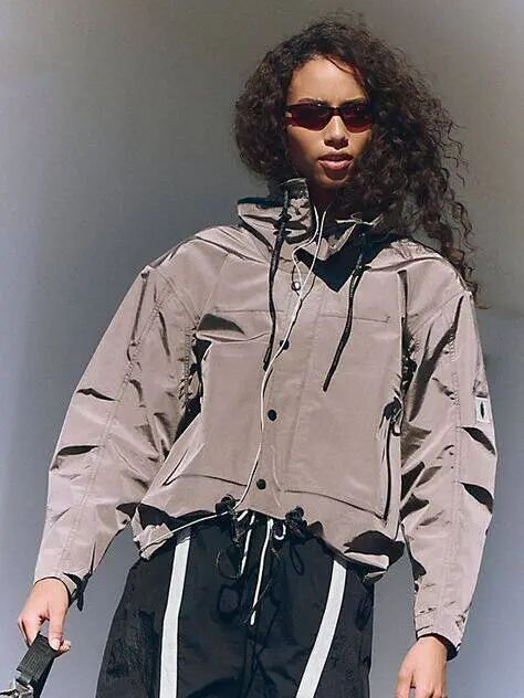 女士褶皱尼龙运动夹克