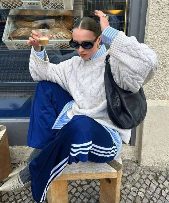运动衫与垂感运动长裤的搭配,