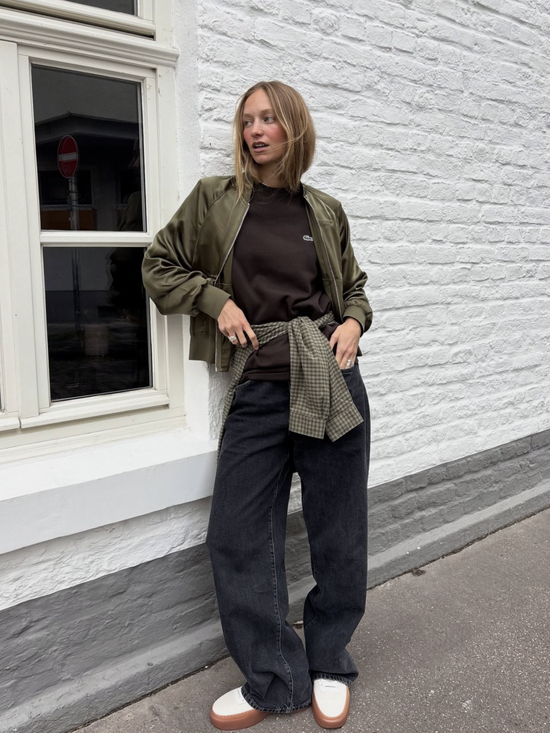 这款飞行员夹克采用宽松剪裁,