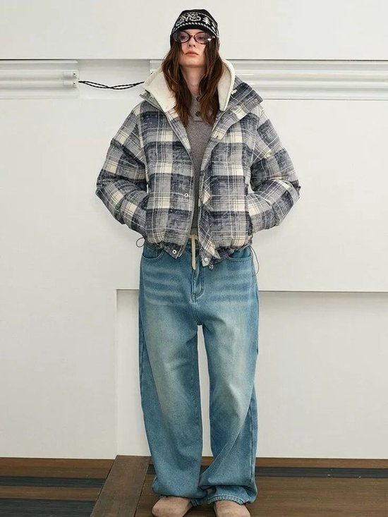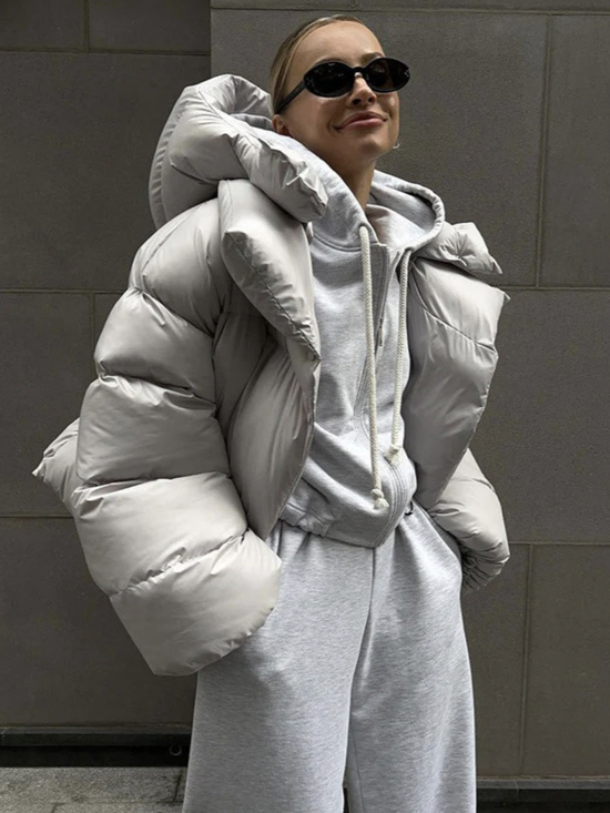 还是与蓬松的短款羽绒服组合,