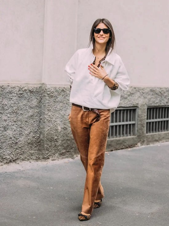 无论是搭配质感柔软的皮夹克,