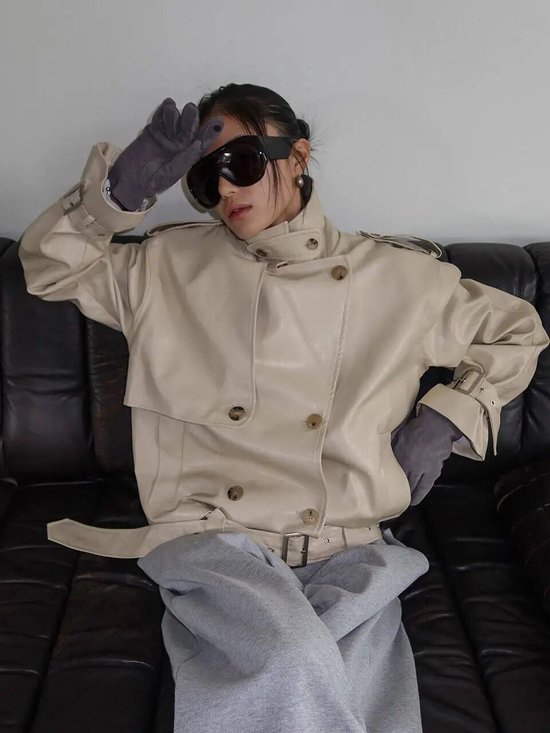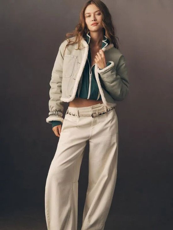 短款夹克上宽下窄的利落板型,