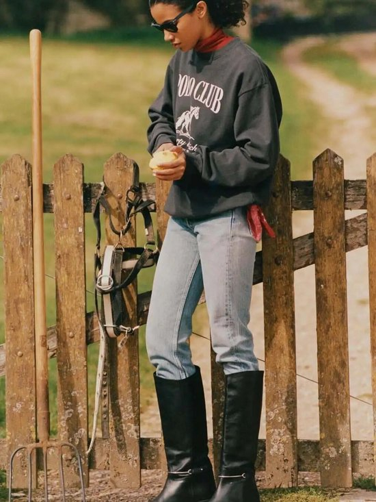 运动衫的松弛感与经典格纹相映成趣,