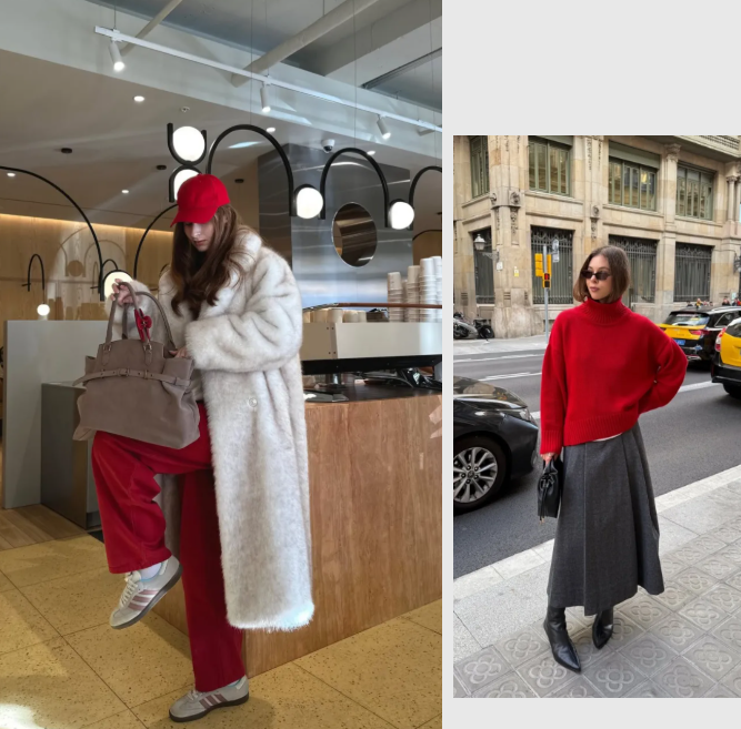 正红气场十足,日常穿又容易突兀。