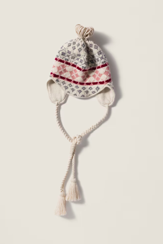 除此之外,费尔岛护耳帽也很受欢迎,低饱和色系的彩色花纹为沉闷的冬季带来一丝可爱的活力,就算只穿纯色服饰时配它也能很出彩。