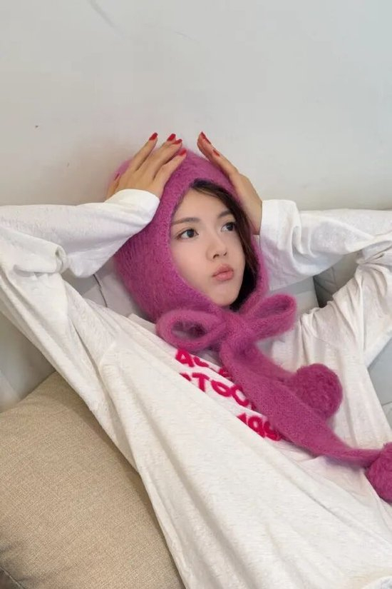 一直很会选帽子的她,每一顶都十分种草。最近妹妹又严选了一款来自ACNE STUDIOS的超萌“小紫帽”,连帽围巾的设计在下巴处系成了一个蝴蝶结,怎么不算送给冬日最好的礼物呢🎁。来欣赏超萌四连拍——