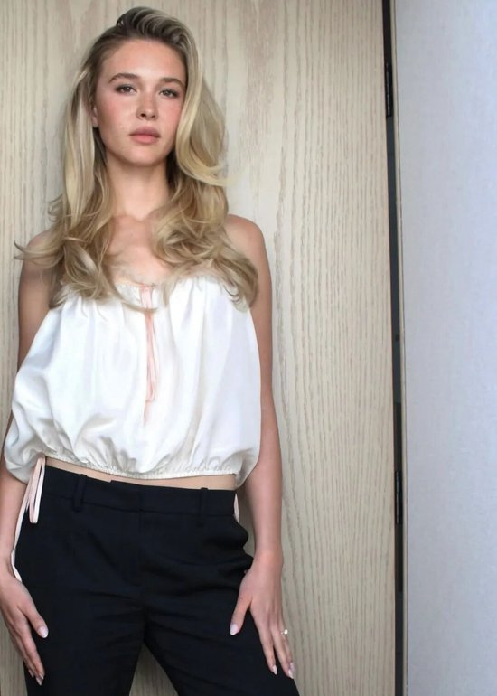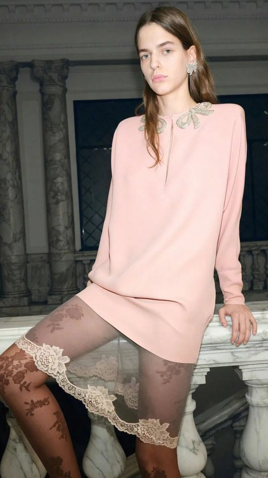 Elle Fanning 的粉色美甲和身上的紫藤花刺绣礼裙相得益彰,短甲+清透裸粉的搭配,把甜美风的浪漫衬得更温柔。