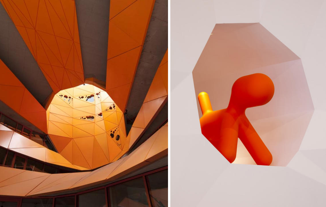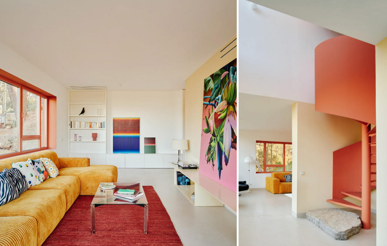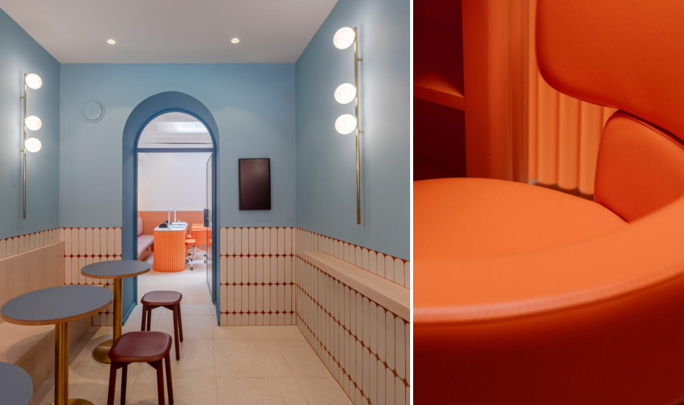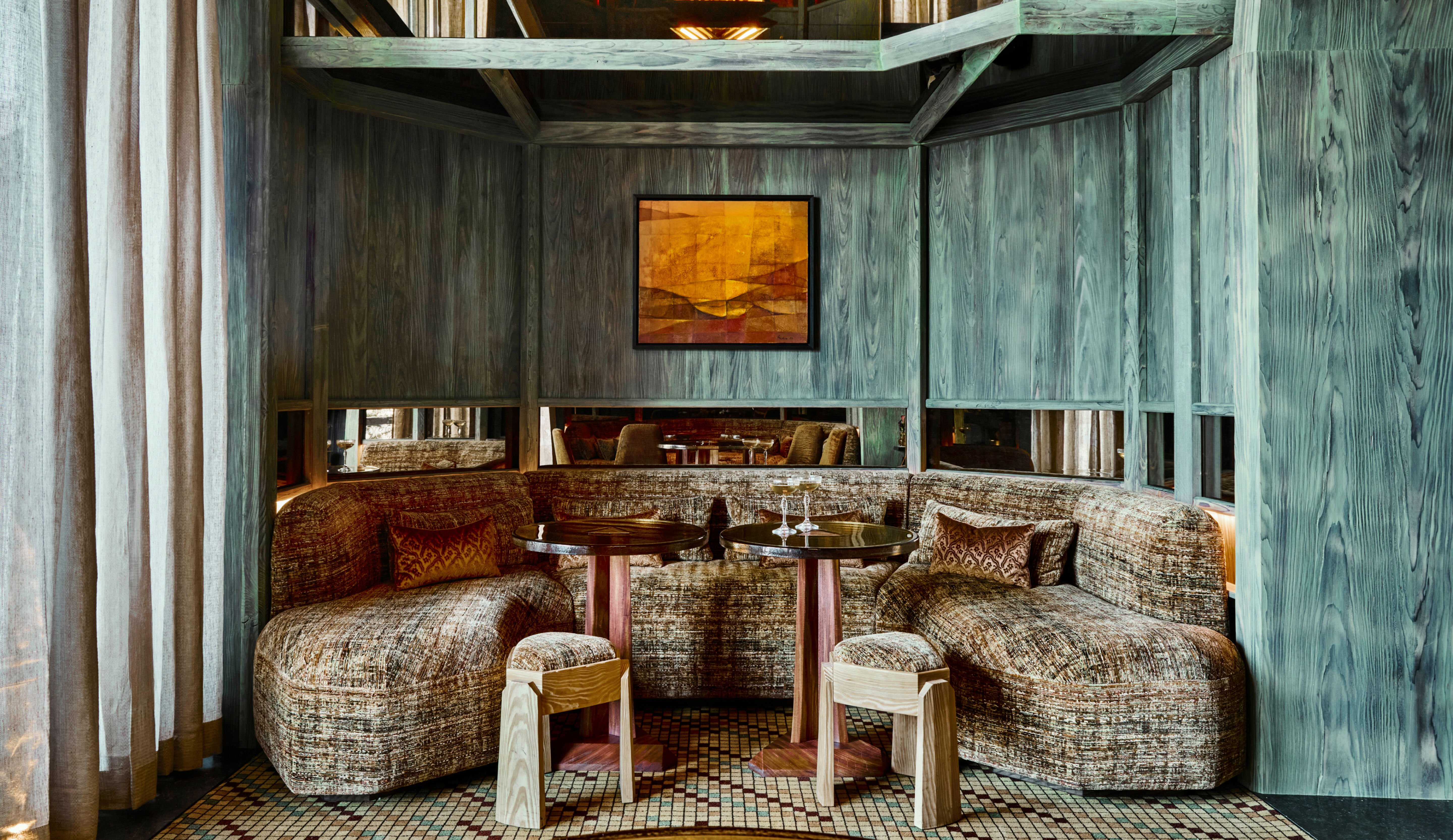 整体大地橙的空间里,就需要通过材质和深浅变化来制造层次感。墙面深一点、地面浅一点、家具介于两者之间,再搭配少量冷色调点缀,比如Kelly Wearstler常用的蓝绿色,冷暖平衡之下,能让整个空间的高级感更突出。