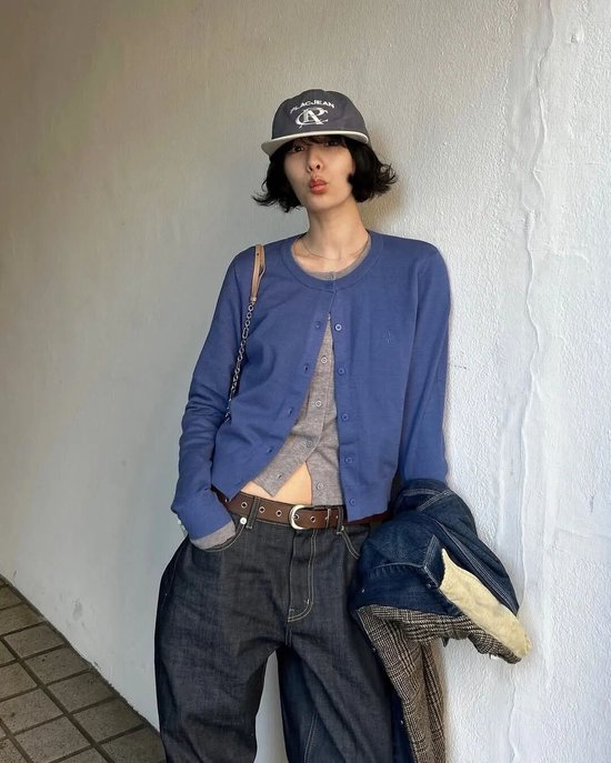 开衫叠加也极具中性魅力,其核心在于随性可控的穿着方式。通过衣摆的开合,可以自由调节领形与宽松度,实现造型的多种变化。无论是全拉上显得利落,还是微微敞开营造慵懒,都能轻松应对。