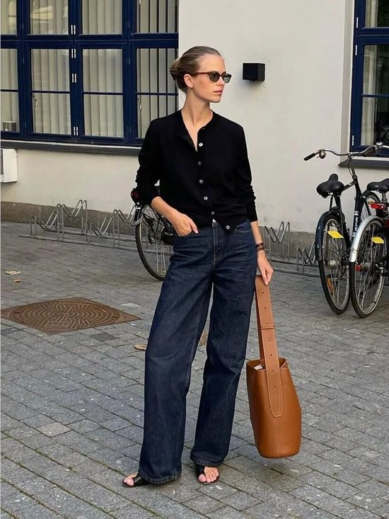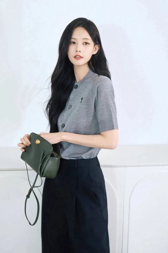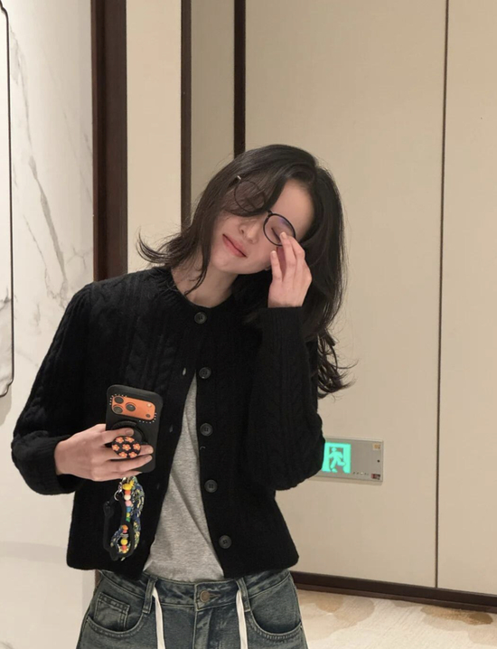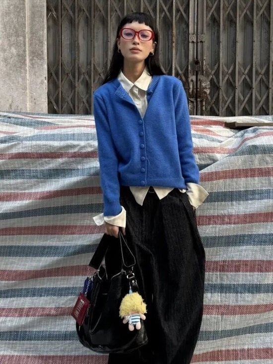 作为百搭的时髦单品,开衫往往摒弃一切繁复装饰,转而依靠剪裁和流畅的轮廓取胜。周雨彤上身的这款针织开衫,以微挺廓形撑起质感。粗圆纽扣点缀其间,瞬间点亮复古氛围。穿搭巧思在于仅系领口第一粒纽扣,任衣摆自然敞开,轻松营造出不费力的高级感。