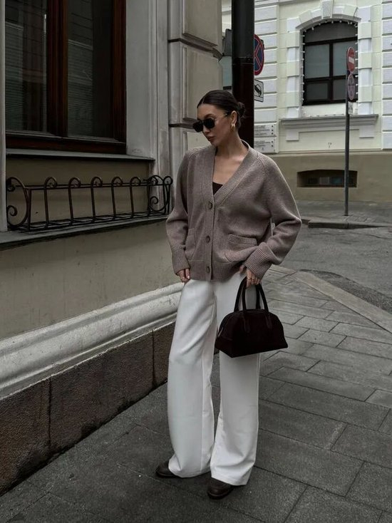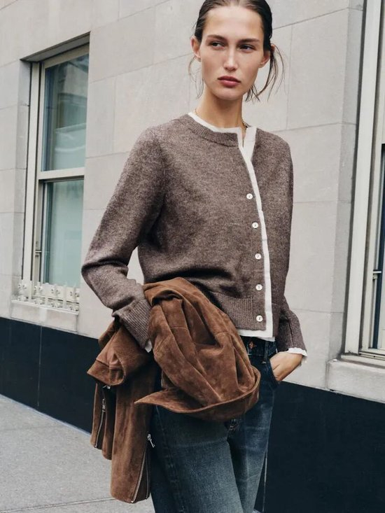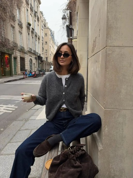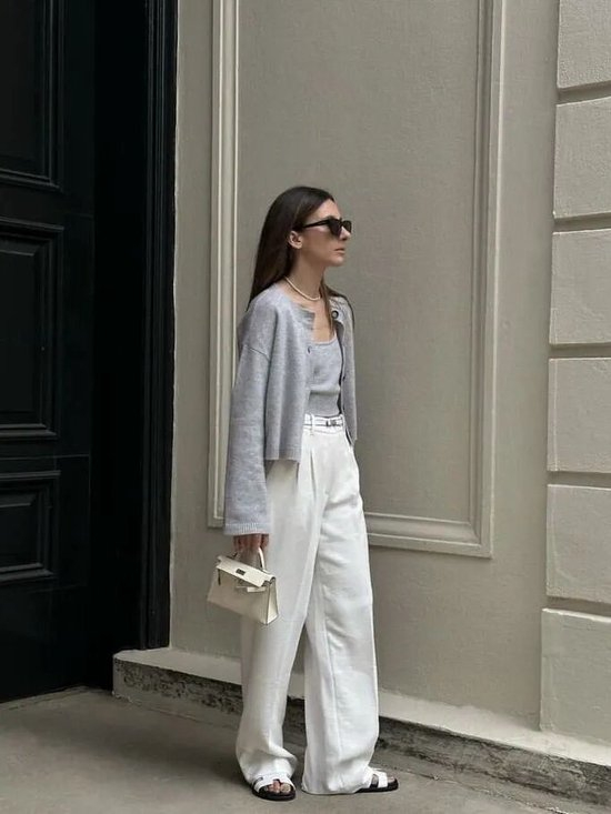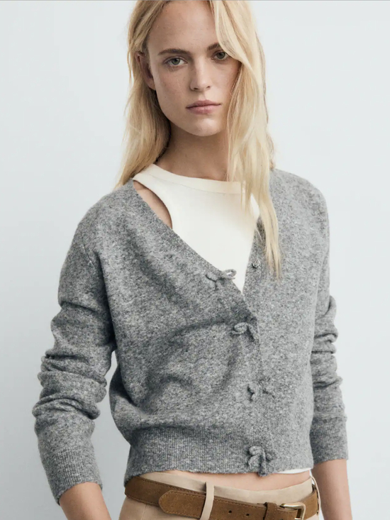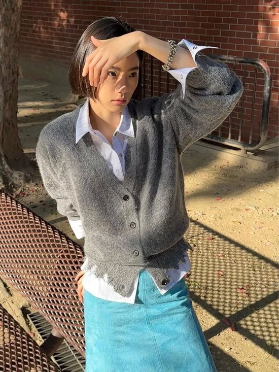 灰色自带一种安静的高级感,一件灰色开衫便足以在春日滤镜下散发柔和的光彩,搭配简约裤装或半裙,不喧闹,却以面料本身诉说品味。