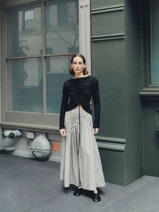 可以尝试直接单穿开衫,这种留白式穿搭的方式,单穿时简约而有张力,一气呵成的流畅线条,勾勒出柔和的身形,同时为身体留足活动的空间。