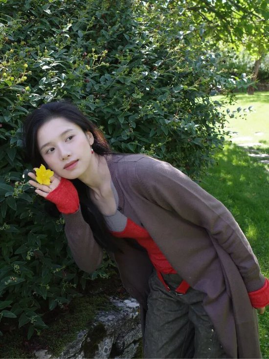 张婧仪这身造型则运用三层叠穿技法,外搭一件宽松长款针织薄开衫,随意垂落的线条显得潇洒自在,内里则以双层针织衫构建层次,一抹红色内搭尤为亮眼,瞬间提升气色,更穿出了自由浪漫的文艺气息。