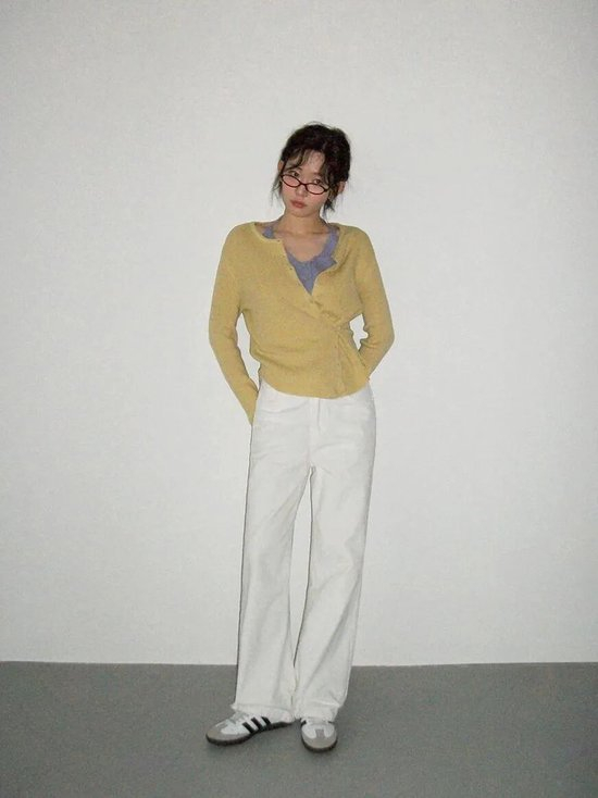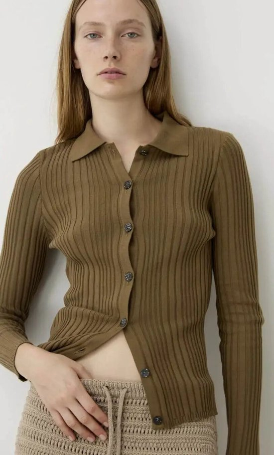罗纹肌理开衫的魅力就在于它织物本身丰富的层次与弹性,紧密的纵向纹路形成了出色的视觉延伸感,即使设计简约,也绝不单调,能游刃有余地穿梭于多种风格场景之间。